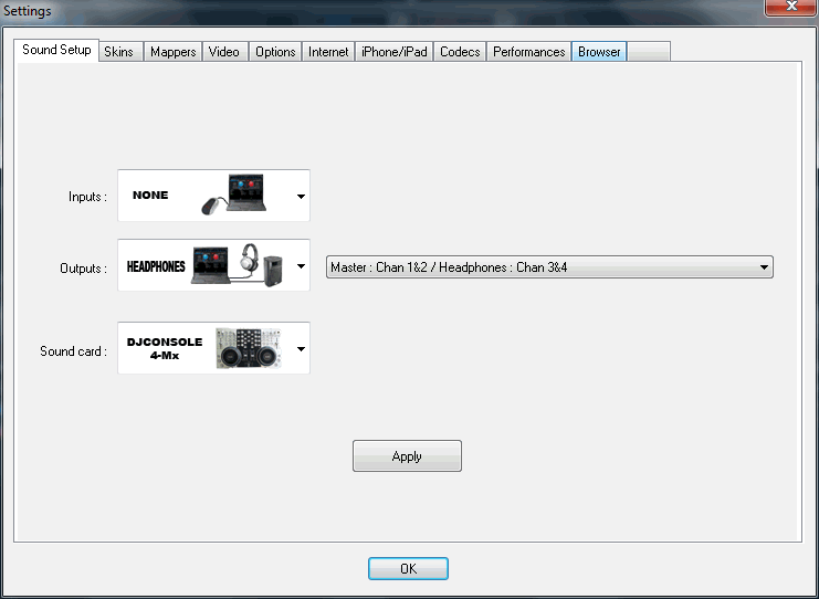 Se come immagino non ti interessa utilizzare gli ingressi (phono, line o mic) devi settare l'audio cosi:
