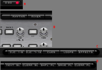 The access controls of the browser, sampler, effects and record bottom of the screen