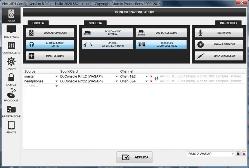 djpeppppe guarda che risulti PRO Infinity Member since 2014, come se avessi già comprato la versione PRO, quindi io non ci sto capendo più una mazza, e forse nemmeno tu, comunque per VDJ 7 la Hercules RMX 2 in WDM si setta cosi
