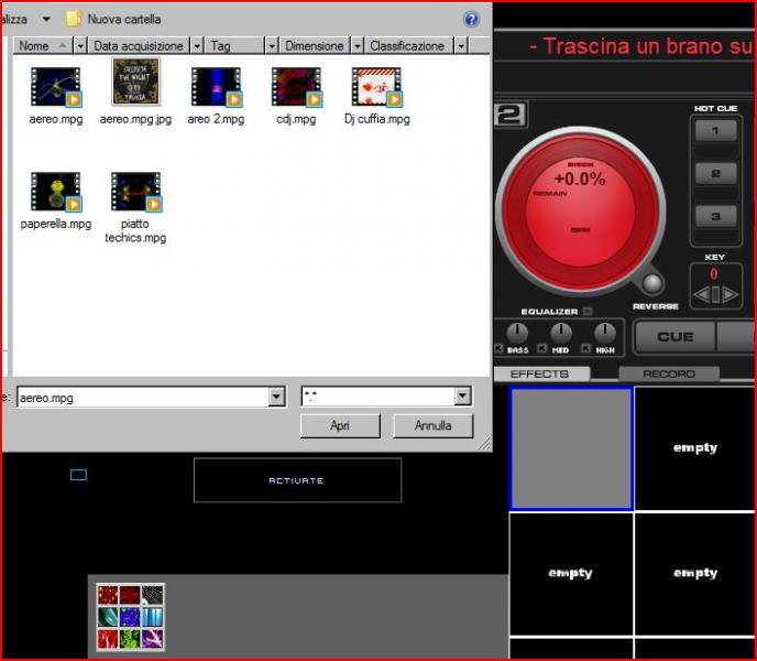 Una volta che compaiono le tre finestrelle ( nel caso di 2 deck) andrai a ricercare il video nel tuo database che vuoi riprodurre,