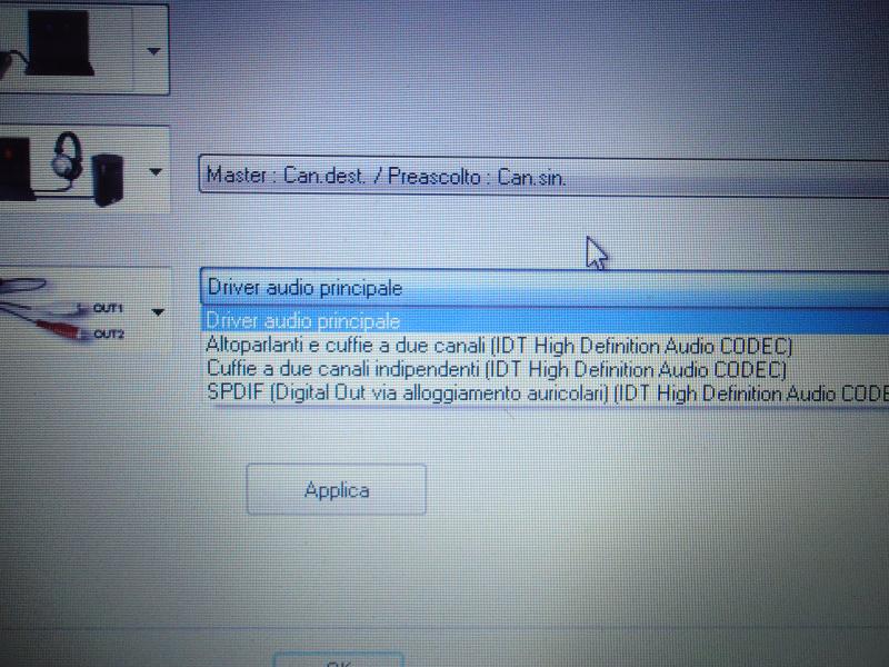ho installato Virtual dj che ho trovato nella scatola , ho riscontro questo problema : sento sempre le 2 canzoni anche se il CUE della canzone che sta già andando è spento , per intenderci , io sono abituato che per posizionare dove voglio la canzone , sentire bene il battito ecc sento in cuffia solo la canzone da mixare mentre quella che sta andando la sento o nella cassa spia e/o nell impianto dove suono . così invece la canzone da mixare si sente pochissimo ( ho già smanettato i volumi sulla consolle ) ma non sono riuscito nel mio intento , cosa posso fare ??? devo configurare qualcosa ?? nella foto si vede cosa posso selezionare dal mio pc , ho già provato con tutte ma niente.