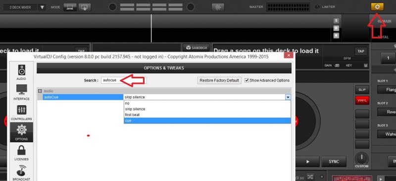 Qualcuno mi sa dire come poter effettuare l'auto cue (che a me risulta molto comodo) con questa meravigliosa consolle e con VDJ8?