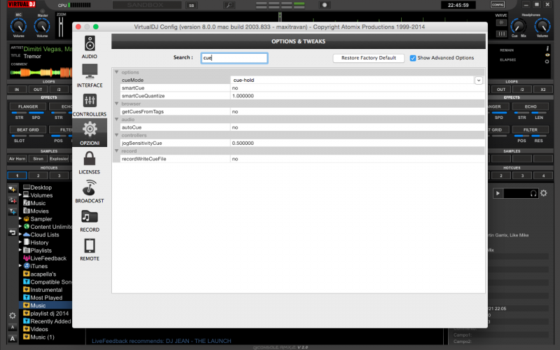 è possibile risolvere? allego le impostazioni per il tasto CUE che ho settato.