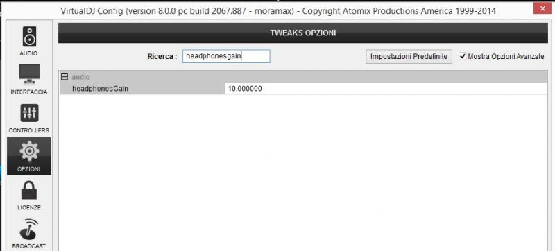 Tranne che i valori per il gainHeadphones che erano di default impostati a 0,500000 e che io avevo portato a 5,000000 senza per altro notare cambiamenti, il resto era già impostato come suggerito.