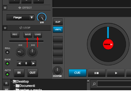 Inoltre nella skin predefinita è possibile salvare e richiamare direttamente un loop