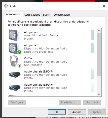 Ho fatto quanto mi hai suggerito ma già era impostata la scheda audio del pc come default (vedi figura).