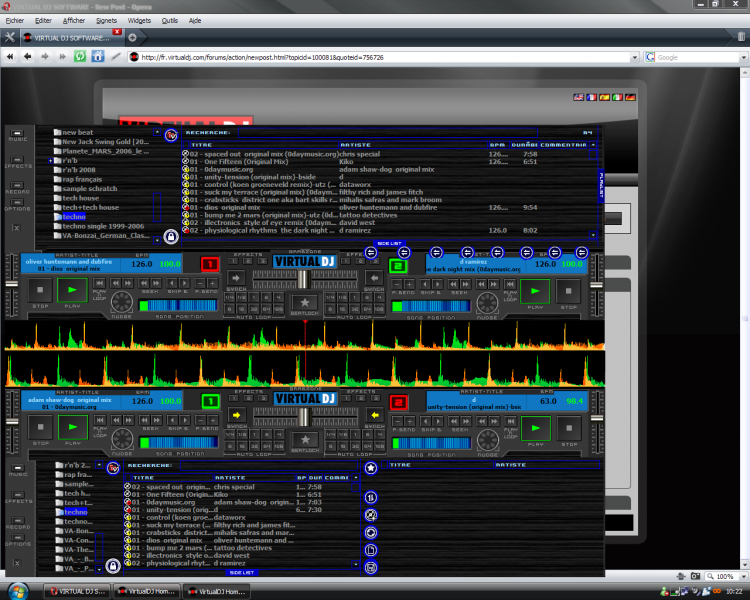 tu ouvre virtual dj avec la une skin multi-instance down screen et tu ouve une deuxieme session des vdj avec la skin multi instance up screen