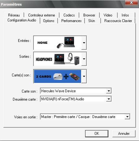 le probleme cest que jarrive pas a selectioner les deux carte au meme temps sur l'ordi...ou elle sont actives mais jentends rien dans les ecouteurs avec la carte ASUS.