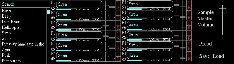Save - saves the current sample list to a file with bpm, vol, etc.