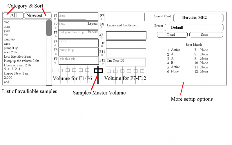 not knocking anybody's efforts here but this looks as though its getting way to complicated all that is needed is a simple cart machine or page that can be brought up quickly, push the the sample and it plays, easy! as for samples being the next best thing they have and i have been around since the sun came up, they have always been part of what i do, they are great for "events" that happen off the cuff throughout the night,