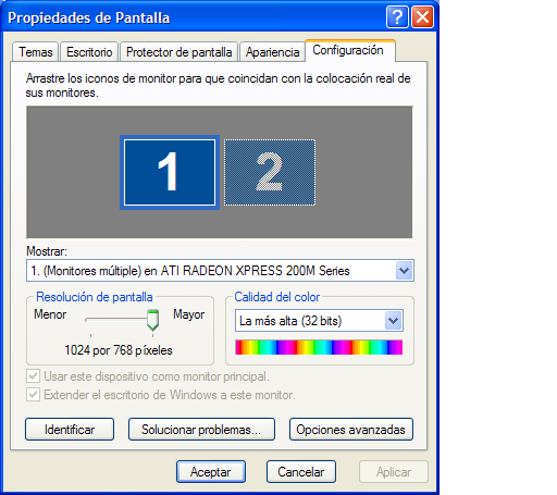 .....y si el problema es que no se activa tu segunda pantalla debe de ser que necesitas alguna actualizacion o code ..o tus driver no son los ideales....