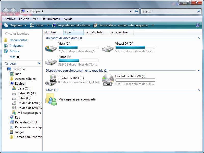 Hola de nuevo. Ya encontré la solución. Resulta que en la tengo una partición común para los datos de las 2 instalaciones que tengo de Windows Vista, esta se llama "Datos".