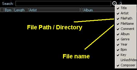 right click on the circle icon [right of Search] and enable filename and filepath. [check = enabled serach; uncheck = disable search.]