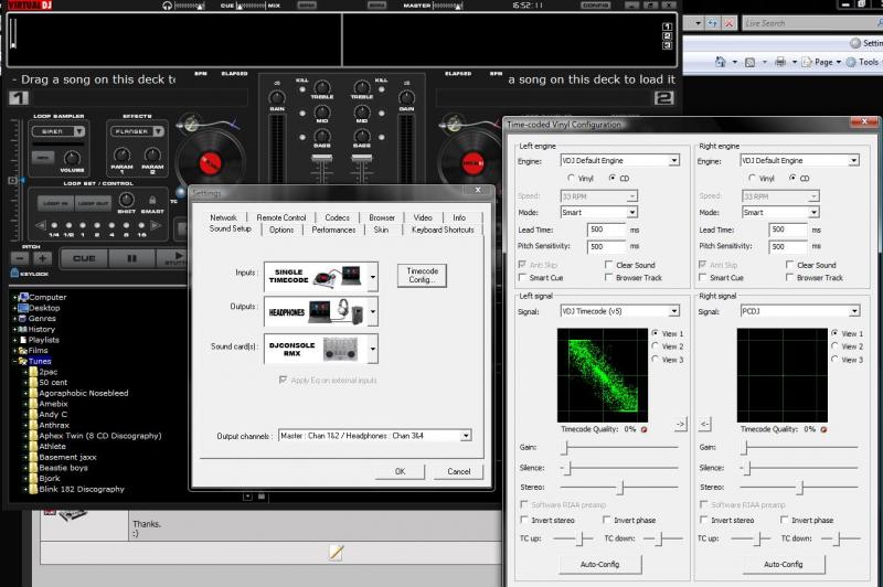 But now, the trouble is the timecode quality never goes above 0% on the correct signal (v5). Also, the song plays when virtual DJ is not even on..which suggests something obvious.