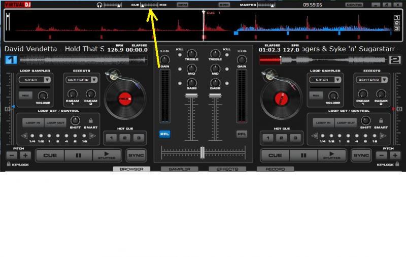 Je m'explique prenons une situation concrete par exemple hier soir , je diffuse en broadcast , j'ai le son de ma platine 1 dans les oreilles avec le crossfader coté platine 1 sur ma table (ou a gauche si vous préferez ) , je lance le son de la platine 2 en préécoute sur mon casque (son qui ne devrait pas s'entendre pour l'instant par les auditeurs )