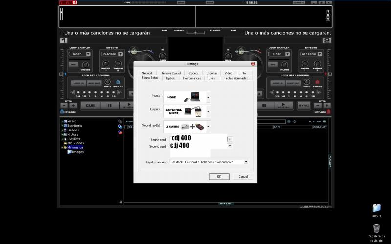 otra cosa los cdj 400 tambien actuan como tarjetas de sonido externas el virtual deberia dectectarte los dos y con los cables de audio que ya tienes conectados mandas la musica a la mesa bueno asi es esto y espero no estarte liando mas aun jejejej!!