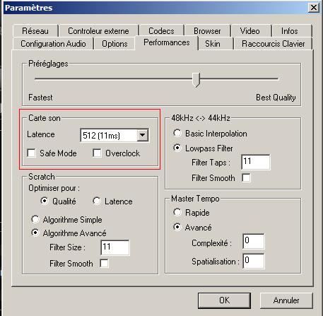 Essayer en diminuant le curseur préreglages vers la gauche , et en augmentant la latence