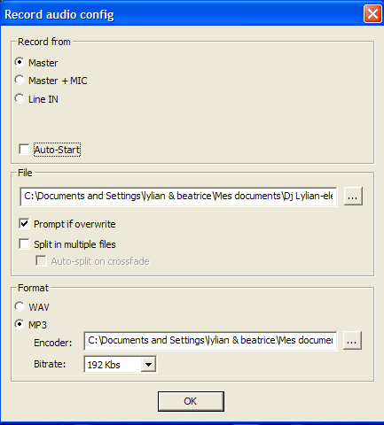 il faut mieux coher "Prompt if overwrite" par mesure de sécurité, pour ne pas réenregistré sur le même fichier mp3 déjà enregistré