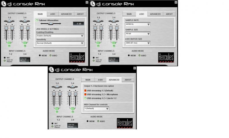 I'm running a Macbook unibody with vdj pro 5.2 with a Hercules RMX. That said, I'm trying to setup timecodes and I know that you have to tweak the ASIO settings on the RMX Control Panel. The problem is my Control Panel looks like the one in the picture but it has no ASIO tab or chooser for "WDM" or "ASIO" at the bottom, they're just not there. I've tried redownloading the driver and still nothing.
