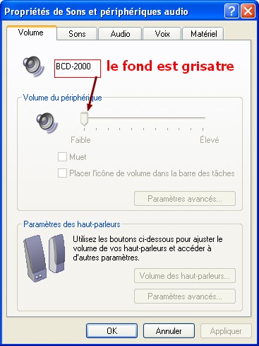 dans (son et périphérique audio) les réglages sont ils en fond grisatre tu pouvais augmenté le volume (en sélectionnant la carte son de la BCD3000) ?????