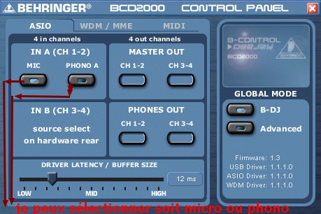 le micro de la BCD2000 fonctionne seulement avec le logiciel de mix de la BCD2000