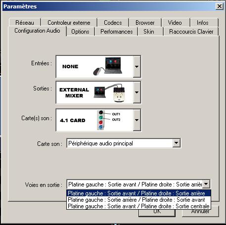 j'ai oublié de precisé que la carte est une carte externe, j'ai essayé les réglages indiqués mais les 2 pistes sont sur la meme sortie quoi je fasse , pas moyen de me servir de la table de mixage!!