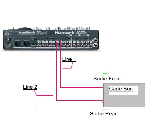 voici le branchement sur la carte son
