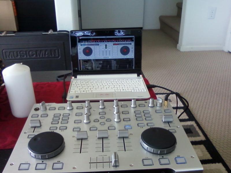 Thermaltake LANbox with Intel Pentium 4 3.0 Ghz and 2 gigs of RAM...obviously good enough to run VDJ 5 but such a hassle to load and setup with monitor, keyboard, external trackball....Yes I do have a laptop but I'm a firm believer in field replaceable units which is why I originally went with the mATX form factor. It took some getting used to but I found out that VDJ runs just fine as long as you take the necessary precautions. Mind you my mATX is only used for DJ\'ing... having said that I popped the Acer One out of the box and immediately installed the drivers and VDJ and not surprisingly got disappointed when I tried mixing between two decks, I was getting CPU spikes and latency. Unwilling to give up I was able to find the optimal operating level after a few hours of real tinkering and here is what I came up with that made this little gem play seemlessly: