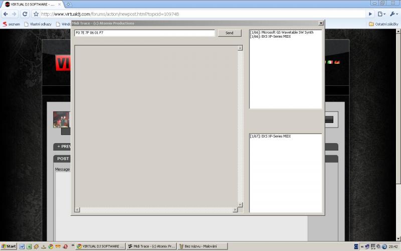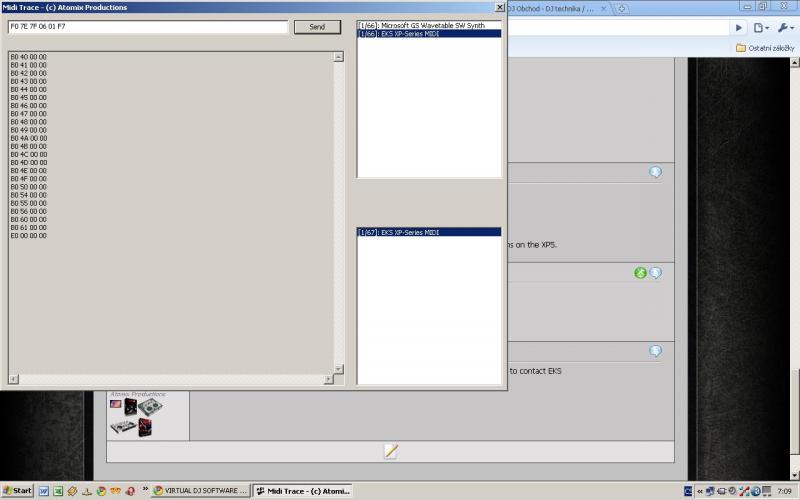 Highlight the EKS XP-Series MIDI in both boxes and press the Send button ...