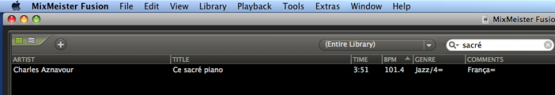 1- The VDJ Search field is not supporting "PASTE" here in my Mac. Using "Text Edit" I typed "Sacré " , copied it ( Command C) and pasted it ( Command V) in VDJ Search field. Well, THE LETTER "V" WAS PASTED. Please, try in you Mac and let me know if you can also experience the same problem. Thank you !