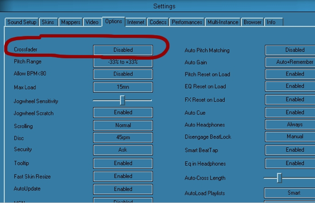 Alguien sabe alguna otra opcion para deshabilitarl el crossfader??????