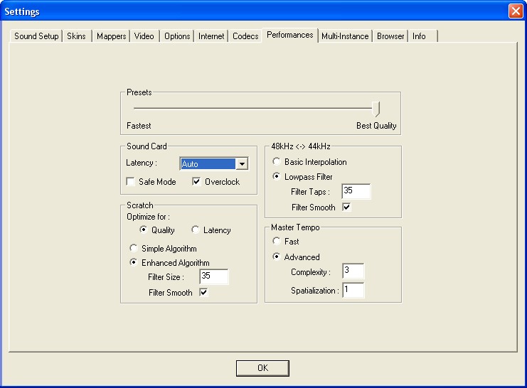 Je reviens vers le peuple VDJ en me prosternant devant lui .............. En effet je suis repassé sur la version 5.2.1 !!! Apres avoir essayé la version 6 et 6.01 (je prefere ne pas tenter la 6.02 pour garder une santé mentale correct ;-). Les reglages de Mon onglet performance se sont modifiés tout seul ! si si...... Du coup je ne retrouve plus mon precedent reglage (c'est pas bien) et le son accroche à tout va !!!!