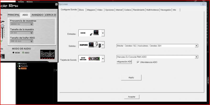 Desde hace una semana he utilizado vdj6 con asio ultra latencia, hasta el dia de hoy todo ha ido a la perfeccion y el sonido era escelente y vdj6 trabajaba bien, pero hoy me dispongo a utilizarlo y suena como si tuviera los altavoces cascados y no puedo usar esta configuracion, aqui os dejo una captura y si pudiera explicarme alguien que es la ultra latencia lo agradeceria, no se si es la mas recomendada para mi yo utilizo una rmx.