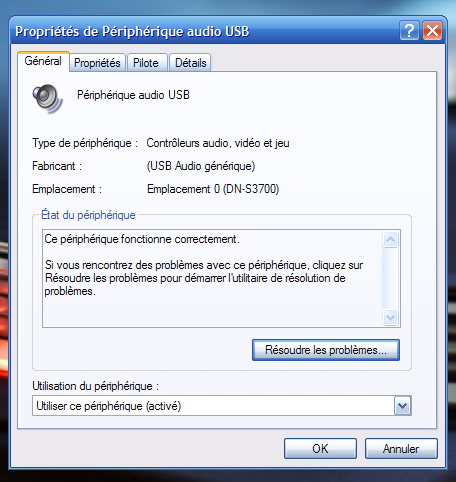 Bon à ce jour j\'en suis resté au fait de vérifier si les DNS apparaissaient dans le gestionnaire de périphérique. Je n\'ai pas explicitement 2x DNS 3700 qui apparaissent mais seulement \"périphérique audio\" x2. Quand je double clique dessus, alors apparait \"Emplacement 0 (DN-S3700)\", et cela par 2 fois.