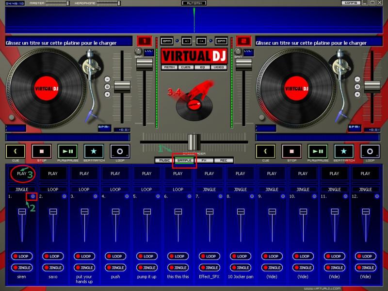 2) Clic sur le menu et charge un sample qui se trouve dans C:\Program Files\VirtualDJ\Samples