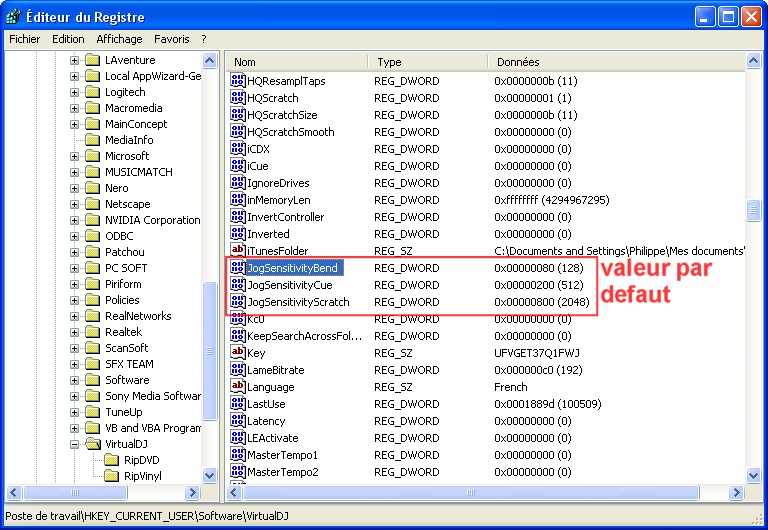 En suite clic sur + HKEY_CURRENT_USER\Software\VirtualDJ