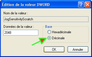 Pour modifier la valeur clic droit sur JogSensitivityScratch -> clic sur modifier -> sélectionner décimale