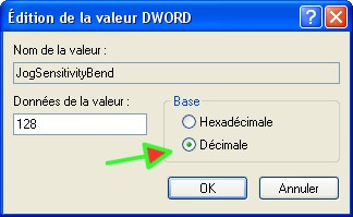 Pour modifier la valeur clic droit sur JogSensitivityBend -> clic sur modifier -> sélectionner décimale