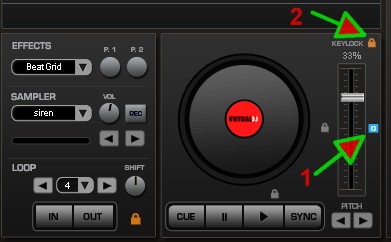 1) En cliquant sur le zéro du pitch normalement ça devrait descendre ou monter à la même vitesse de la musique avec pitch_reset 1% qui est par défaut