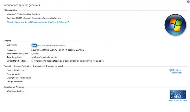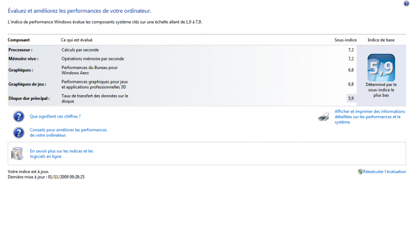 voila mon indice de perf sur windows 7 64 bits