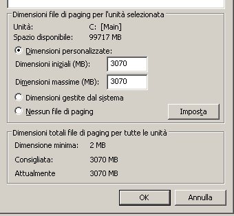 ma non dimenticatevi di definire il file di Paging in modo FISSO :