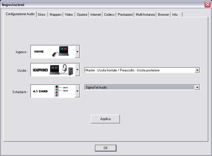 Collego il cavetto delle casse all'uscita della scheda... e fin qui ci siamo, sento le casse, sento la cuffia, ma non capisco come settare le impostazioni del programma per avere il preascolto. la schermata di virtual dj, tra l'altro non mi indica la scheda come 7.1, ma solo come 4.1...