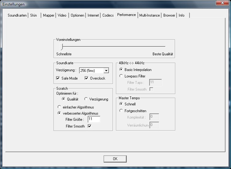 I tried enhancing the latency with help from DPC Latency Checker and raising the latency in the settings, I tried taking strain from CPU (Intel Core 2 Duo 1.6 GHz) and memory (4GB) with Game Booster – no big effect (also it'd be really annoying to use TCVs with more than 11ms for scratching).