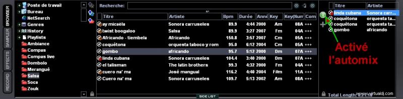Après avoir remplir votre playlist dans la fenêtre de droite, cliquez sur la petite boule en grisâte dans la playlist, pour activé l'automix,