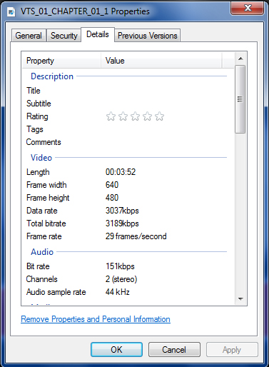 I have attached before and after screen captures of the file property info as well as a screen capture of the software with the settings I'm using.