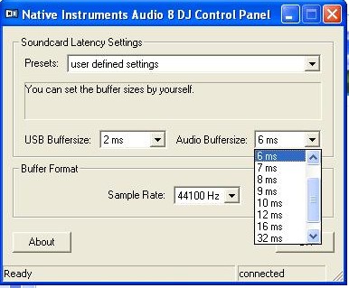Ce paramètre est le mien (USB Buffersize 2 ms / Audio buffersize 6 ms)