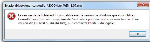 Installe bien en "mode administateur" ensuite tu télécharge les driver Asio pour 64x.