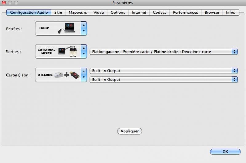 ensuite tu choisi 2 carte son et tu met tes 2 platines a la place de built in output ( sur la photo )