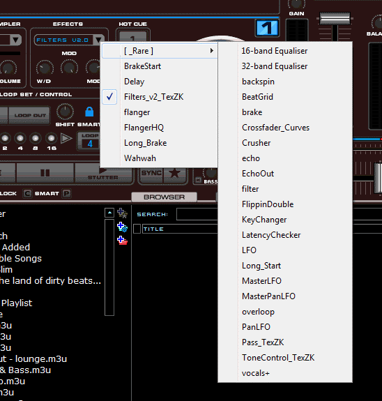 - Ability to make "browsing" of the tracks with jogs, simply hold the "Cue Select" button on the deck and rotate the Jog. (No Hercules MK2)