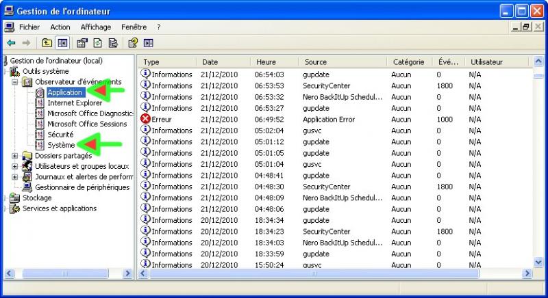 mais on voir les erreurs, fait un clic droit sur icône ordinateur --> Gerer -> observation et regarde dans (application, système) regarde les nom des erreurs source et nom événement au heure que ça à planter.